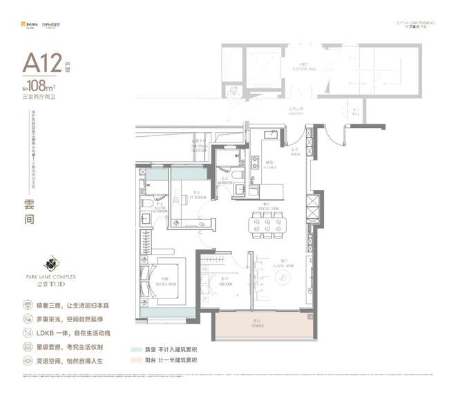 建面约108㎡的明星户型,则在有限的空间内做到了尺度感与舒适度的最大化。横跨客厅与次卧的巨型宽面阳台,采光面极为奢侈