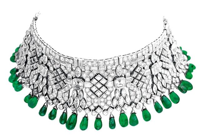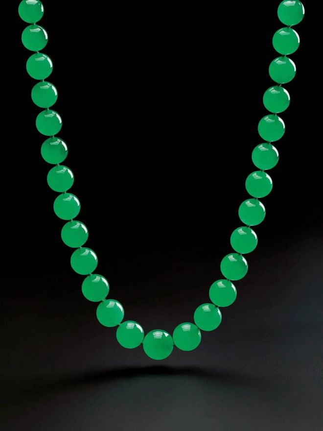她是个“翡翠爱好者”,27颗顶级皇家翡翠珠穿成的项链,Cartier又为其重新定制了镶嵌有红宝石及钻石的黄K金与铂金链扣,还定做了枚翡翠戒指来配。