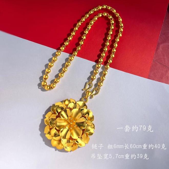 百年老鳯祥新款云南傣族大款花朵吊牌越南沙金吊坠镀黄金色圆珠项 款式1吊坠搭配圆珠项链