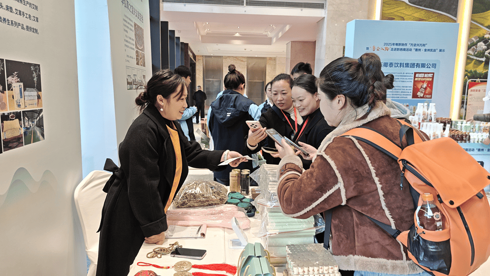 “工艺特别精湛!”“茶香四溢,口感醇厚……”11月4日上午,2025年粤黔协作“万企兴万村”暨“粤企入黔”走进黔西南活动——“惠州·金州优品”展示在兴义举行。活动现场,来自惠州市与黔西南州的本土企业集中展销茶叶、中草药、手工艺品等生态特色产品,并同步开展产销合作对接洽谈。